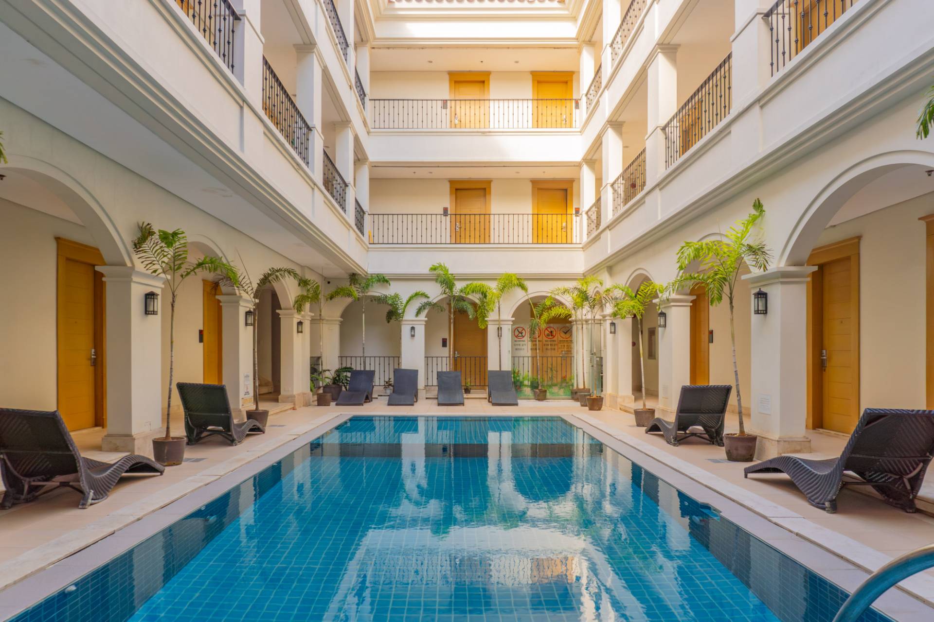 Our pool welcomes you if you want to swim in more tranquil waters. Children can play safely in the kids’ section, while adults can stand in the adult area. Open until 10:00 p.m.